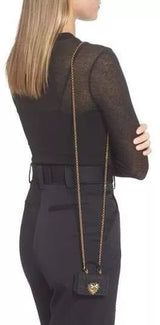 Featuring a quilted effect, a front logo plaque, an optional chain strap and a round top handle.