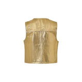Ganni Gold Coated Gilet. Gold color, front fastening with plexi-covered buttons with logo, pocket closed with snap button on the side, regular fit. Composition: 100% Organic Cotton Internal SKU: 25GIU115 Brand SKU: 900639226885