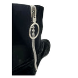 Unleash enviable chic with these statement Off-White ankle boots, masterfully crafted from premium suede calfskin. Infused with the brand’s signature edge, they feature a sleek side zip opening for easy wear and a bold logo print on the heel that proclaims your fashion status. Made in Italy, these boots are a true testament to sartorial excellence and contemporary cool.