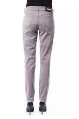 Dare to stand out with these stunning BYBLOS pants, crafted for the fashion-forward individual. Meticulously made in Italy, these pants boast a chic gray hue and are tailored to perfection with a blend of cotton and elastane, ensuring both comfort and a flattering fit. Adorned with both front and back pockets, they are finished with the signature BYBLOS personalized button – a nod to the brand’s attention to detail. Make a bold statement in your wardrobe with this must-have piece.