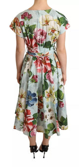 Gorgeous brand new with tags, 100% Authentic Dolce & Gabbana Green dress with tie fastening at the waist. Made of cotton. Zip fastening at the back. Decorated with a colorful floral print and gathers. V-neck.