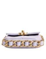 This Chanel Mini Framing Chain Bag gorgeous light purple calfskin leather.
