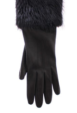 Black Beaver Fur Lambskin Leather Elbow Gloves