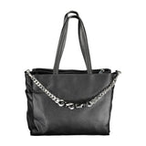 bag 2 shoulder handles, removable chain shoulder strap, 2 external pockets, 1 internal pocket, internal spaces for documents, closure with zip and snaps, logo