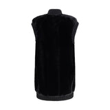 Long Vest in faux fur by Pinko, featuring a straight cut and ribbed knit details along the stand collar, concealed front opening, and armholes. Made from soft Aspen fabric with a faux fur effect, it offers a particularly pleasant and cozy feel.