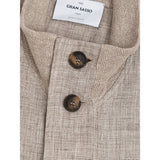 Gran Sasso Beige Linen Lightweight Jacket. In beige linen, brown button closure, two front pockets with buttons, knitted turtleneck collar and elasticated waistband. Composition: 100% Linen Internal SKU: 25MG88 Brand SKU: P20257817553102110
