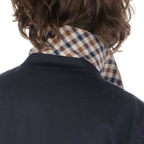 Step out in sophisticated style, rain or shine, with Aquascutum’s quintessential blue men’s raincoat. Crafted from a premium cotton-polyamide blend for utmost durability, this sleek coat features a classic front button fastening and handy side flap pockets. The checked undercollar adds a touch of elegance visible only when you choose, a subtle nod to the brand’s signature detailing. Ideal for the modern man, it’s designed to fit a stature of elegance at 182 cm in a size 48. Make this Aquascutum piece a reliable companion for your wardrobe, where functionality meets timeless design.