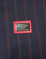 Gorgeous brand new, 100% Authentic Dolce & Gabbana pinstripe logo-tape track jacket, black/red virgin wool pinstripe pattern logo patch at the chest high neck long sleeves front zip fastening.