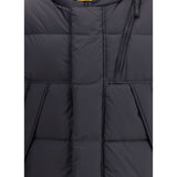 The Down hooded Down Jacket by Parajumpers features a double-slider front zipper closure, protected by a windproof flap with snap buttons. The hood is adjustable with drawstrings, while the garment offers three exterior zippered pockets and two interior pockets. The waist and bottom are adjustable with drawstrings, and the cuffs are made of elastic rib for a better fit. Completing the design is the reflective PJS logo on the back yoke, the Parajumpers patch on the sleeve, and the iconic removable yellow tape at the neck closure.