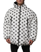 Gorgeous brand new, 100% Authentic Dolce & Gabbana white puffer jacket with a repeating pattern that appears to be the Dolce & Gabbana logo or monogram, consistent with the brand’s aesthetic.