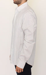 Color: White and black striped Style: Button Front Casual Shirt Logo detailing Made in Italy