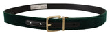 high-quality velvet material featuring a gold tone metal buckle closure. A unique eye-catching belt full of character.
