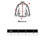In light beige wool, linen print effect on the front, zip closure, knitted turtleneck collar and elasticated waistband, two side welt pockets. Solid color back.