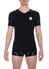 Elevate your everyday style with the sleek sophistication of Bikkembergs’ V-neck T-shirt. Designed for the modern man who commands attention, this black tee combines comfort with the edge of high fashion. Crafted from a premium blend of cotton and elastane, it promises a fit that’s snug yet stretches with your every move. Make a bold statement with Bikkembergs—the epitome of luxury casualwear.