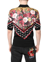 Black Floral Collared Short Sleeve T-shirt