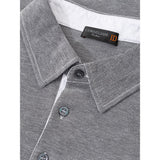 Corneliani Grey Long-Sleeve Polo Shirt in grey cotton, featuring a classic polo collar with four bi-color buttons in white. The model is 183 cm tall and wears a size 50. Made in Italy Internal SKU: 24OTT150