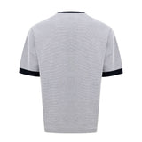 Dunhill Grey Pique Cotton T-Shirt. Contrasting blue knit collar, small metal tag with logo applied on the side, regular fit Composition: 100% Cotton Internal SKU: 25MAR19 Brand SKU: DU19RL28855D