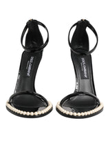 Gorgeous brand new, 100% Authentic DOLCE & GABBANA sandals come crafted from black patent leather and are designed with pretty pearls embellished open toes and zipper closures.