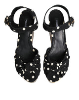 Gorgeous brand new, 100% Authentic DOLCE & GABBANA polka dotted fabric uppers are complemented by platform wedges carrying fish details for a dreamy, marine look.