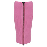 Tom Ford Pink Knit Zip Pencil Skirt. Central zip with double slider and padlocks, ribbed knitwear fabric, below-the-knee length. Composition: 55% Wool, 19% Silk, 14% Polyamide, 9% Polyester, 3% Elastane Internal SKU: 25MAR03 Brand SKU: GCK149YAX597DP285
