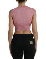 Pink Crew Neck Cropped Sleeveless Tank Top