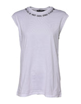 White Cotton Sleeveless Printed Tank T-shirt