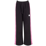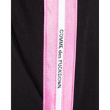 Embrace the audacious spirit of ‘Comme Des Fuckdown’ with their iconic cotton palazzo trousers, a perfect blend of comfort and high-fashion edge. Featuring a fuchsia logo side band that pops against the classic black canvas, these pants make a bold statement. Adorned with the brand’s signature logo on the front and tailored with a drawstring waist for personalized fit, it’s a covetable piece bringing streetwear luxury to your wardrobe.