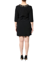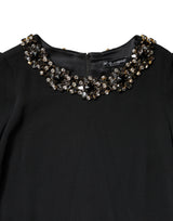 Gorgeous brand new, 100% Authentic Dolce & Gabbana black a-line shift mini dress crafted from blended material features round neck with crystal embellishment.