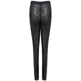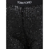 Tom Ford Stretch Sequin Black Pants. Contrast logo elastic waistband, straight leg, concealed zip at bottom. Composition: 100% Polyester.