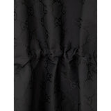 In black technical fabric, allover logo, maxi contrasting Gucci Web Logo on the front, adjustable hood and half zip on the front. Buttons on the sides to adjust the fit, adjustable elastic on the back with internal drawstring.