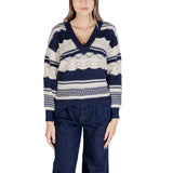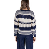 The ICHI IHASTRA 20122033 women’s sweater is the perfect choice for a casual yet sophisticated look. Made from 55% recycled polyester and 45% polyester, this knitwear combines sustainability with comfort. The sweater features an intricate knit pattern with geometric designs and openwork details, adding a feminine and modern touch. The V-neckline enhances the silhouette, while the slightly loose sleeves ensure a relaxed fit. Ideal for transitional seasons, this sweater pairs effortlessly with jeans or wide-leg trousers for a contemporary and versatile style.