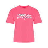 Step into the edgy domain of streetwear flair with Comme Des Fuckdown’s audacious jersey t-shirt, emblazoned with its unapologetic logo print. This statement piece is an homage to confident self-expression, draped in a vivacious pink hue that defies the mundane. Crafted with premium cotton, it fuses comfort with trendsetting design, ensuring you exude cool nonchalance with every wear. Dare to make an impactful addition to your wardrobe with this bold top that screams avant-garde chic.