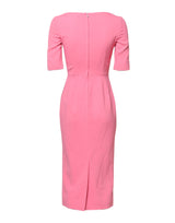 Pink Viscose Short Sleeve Sheath Midi Dress