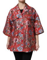 Red Floral Jacquard Button Down Coat Jacket