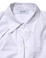 Gorgeous brand new, 100% Authentic AGLINI white long-sleeved shirt with a unique ruffled detail on the front panel.