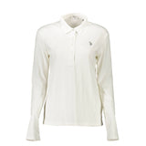 Embrace the timeless elegance of the U.S. POLO ASSN. with this chic long-sleeved polo shirt. Perfectly tailored with a sleek 4-button design, this top features exquisite embroidery and the iconic logo that stands as a testament to classic style and sophistication. Made from a premium blend of 95% cotton and 5% elastane, this polo shirt promises both comfort and a flattering fit. Whether for a casual day out or a smart-casual event, this white polo shirt is a versatile addition to your wardrobe.