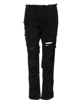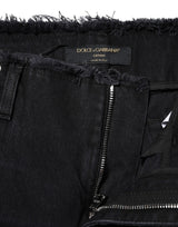 Gorgeous brand new, 100% Authentic Dolce & Gabbana straight mid waist tattered denim jeans with DG logo plaque.