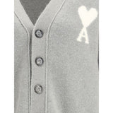 The Ami de Coeur Cardigan in Alpaca by Ami Paris blends softness with essential design in a timeless piece. Crafted in alpaca knit, it stands out with its interlock construction and the iconic Ami de Coeur intarsia on the chest, a symbol of elegance and affection. Horn buttons engraved with “ami” enrich the design, conceived as a unisex garment that naturally adapts to any style.