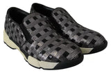 Silver Black Slip-on Sequence Design Sneakers Shoes